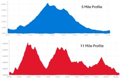 We offer the original full 11-mile route as well as a shorter 5-mile option! Both routes follow existing trails inside the Hanging Rock State Park. The shorter route turns off the main route at the intersection of Moore's Wall trail and Magnolia Springs trail and returns to the start. Both routes will start and finish in the upper (lake) parking lot.